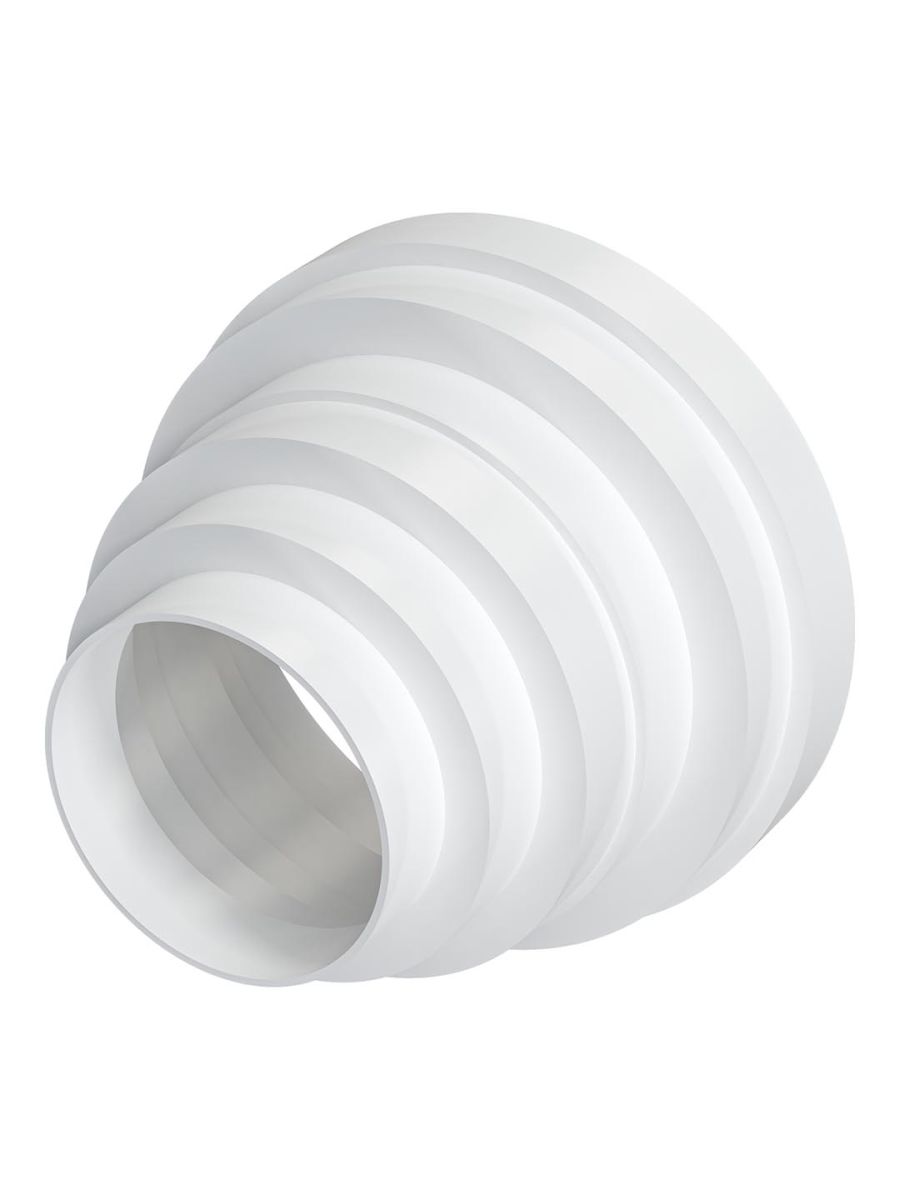 Переходник универсальный PU применяется для соединения каналов разных диаметров. Корпус подрезается для получения редуктора с необходимыми диаметрами. Соединение осуществляется напрямую с воздуховодами.