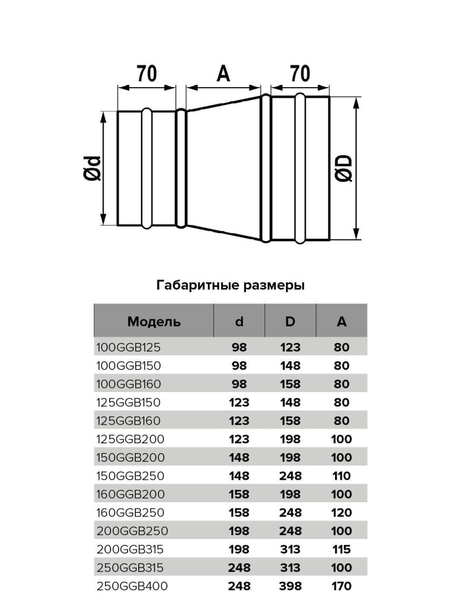 Редукторы для круглых воздуховодов GGB изготовлены из оцинкованной стали. Для соединения воздуховодов различных сечений между собой и с вентиляционным оборудованием. Соединение осуществляется напрямую с воздуховодом. Возможно изготовление специальных изделий