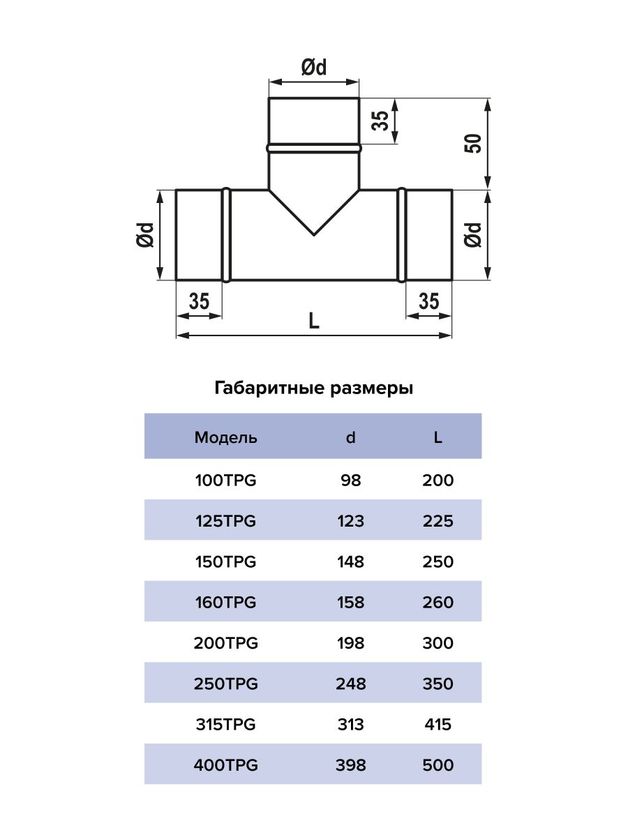 Тройники для круглых каналов TPG изготовлены из оцинкованной стали. Для соединения воздуховодов между собой и разделения воздушных потоков. Предназначен для соединения изделий одного диаметра. Соединение осуществляется напрямую с воздуховодом. Возможно изготовление специальных изделий