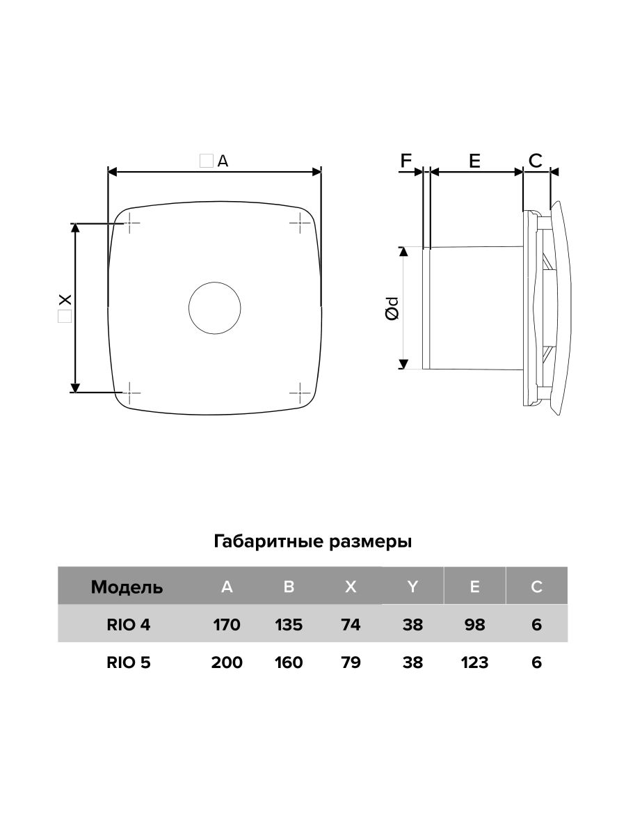 Вытяжные накладные вентиляторы RIO приемняются для монтажа в вентиляционные шахты или соединения с воздуховодами. Диаметр фланца 100 и 125 мм. Гармоничный дизайн с закрытой лицевой панелью без прямых углов. Двигатель на шарикоподшипниках с увеличенным сроком службы (до 40 000 часов непрерывной работы). Бесшумный обратный клапан с резиновыми стопперами. Подходит для монтажа в потолок (после снятия обратного клапана). Уровень защиты – IP24
